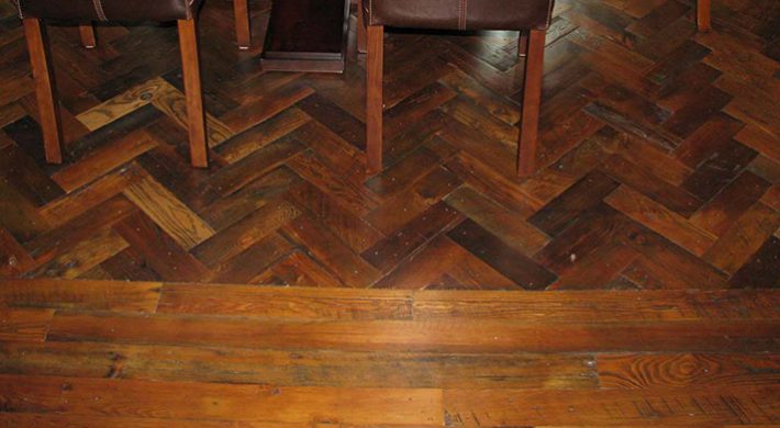 Herringbone flooring has been around for thousands of years. Herringbone floors can be made from all types of species, whether it’s new material or antique reclaimed material. Other than laying a floor in a herringbone pattern, we can also bring full customization to the floor.